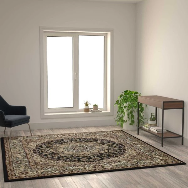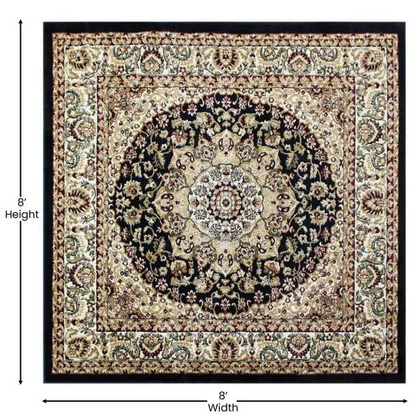 Flash Furniture Black 7×7 Square Traditional Persian Style Rug