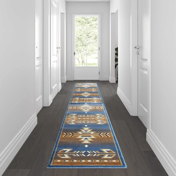 Showcase your personal style and bring the feel of the southwest home with the stunning geometric pattern of this area rug. This versatile area rug allows you to add warmth to hardwood floors, add color in multiple spaces, and protects flooring in high-traffic areas. This low pile area rug can be a warm place for your feet by the bed or an accent in your design scheme. Modern rugs provide several benefits in the home. Made from olefin fibers, this contemporary area rug is stain and water resistant, colorfast, and provide a soft underfoot feel friendly to kids and pets. The jute backing gives this rug structural integrity and helps promote air flow. Vacuum regularly without the beater bar and spot clean with water and a mild detergent to maintain the look of your new rug.