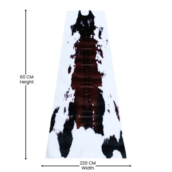 Add some old west flair to your home with the popular look of this faux cowhide print area rug. This modern area rug is completely synthetic making it a cost-effective and cruelty-free alternative to the real thing. Ultra-soft olefin fibers make this area rug an ideal choice for kids rooms, bedrooms, or living rooms. Both durable and versatile, this colorfast, non-shedding rug resists water and stains and is suitable for multiple flooring types. The eco-friendly jute backing provides structural integrity and promotes air flow. Vacuum regularly without the roller brush to maintain the looks of this cool rug. For heavily soiled areas or stains, professional dry cleaning is recommended.