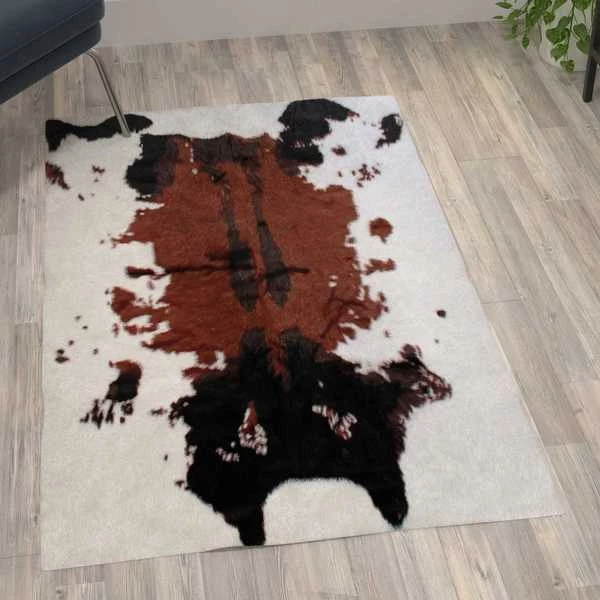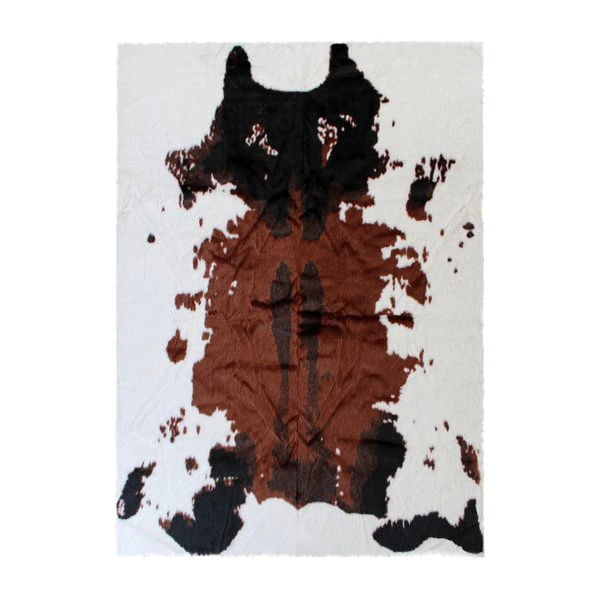 Add some old west flair to your home with the popular look of this faux cowhide print area rug. This modern area rug is completely synthetic making it a cost-effective and cruelty-free alternative to the real thing. Ultra-soft olefin fibers make this area rug an ideal choice for kids rooms, bedrooms, or living rooms. Both durable and versatile, this colorfast, non-shedding rug resists water and stains and is suitable for multiple flooring types. The eco-friendly jute backing provides structural integrity and promotes air flow. Vacuum regularly without the roller brush to maintain the looks of this cool rug. For heavily soiled areas or stains, professional dry cleaning is recommended.