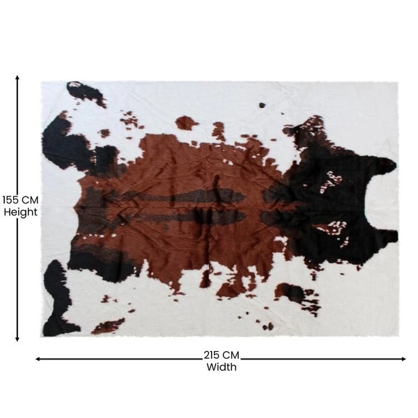 Add some old west flair to your home with the popular look of this faux cowhide print area rug. This modern area rug is completely synthetic making it a cost-effective and cruelty-free alternative to the real thing. Ultra-soft olefin fibers make this area rug an ideal choice for kids rooms, bedrooms, or living rooms. Both durable and versatile, this colorfast, non-shedding rug resists water and stains and is suitable for multiple flooring types. The eco-friendly jute backing provides structural integrity and promotes air flow. Vacuum regularly without the roller brush to maintain the looks of this cool rug. For heavily soiled areas or stains, professional dry cleaning is recommended.