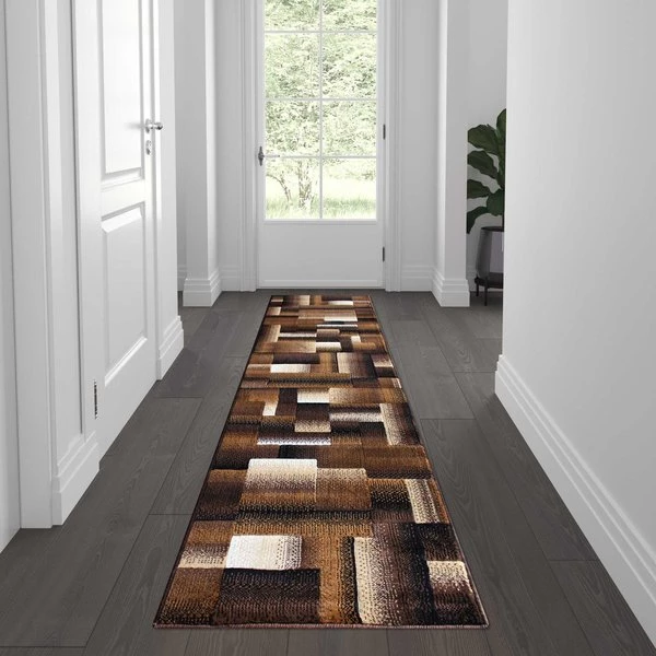 Flash Furniture Chocolate 2' x 7' Modern Color Blocked Area Rug