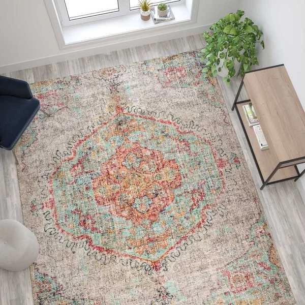 Flash Furniture Distressed Medallion Area Rug – 8' x 10' – Gray Multi Polyester