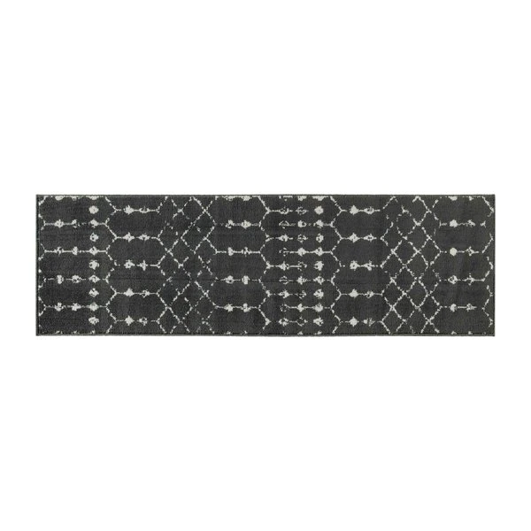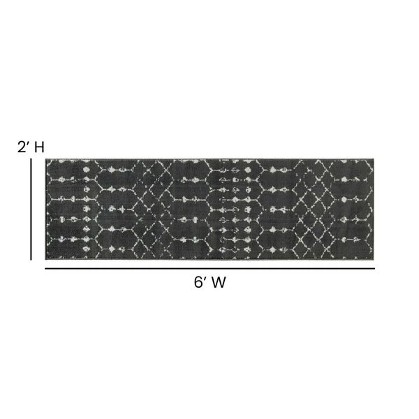 Flash Furniture Geometric Bohemian Low Pile Rug – 2' x 6' – Dark Gray/Ivory Polyester