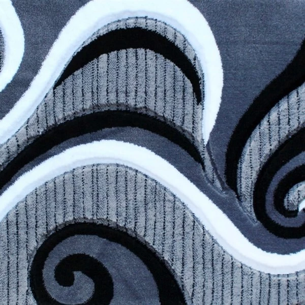 Let the sculpted, gently swirled pattern of this multipurpose area rug add unique style to any room in your home. Offering not only striking looks, this versatile contemporary accent rug allows you to add warmth to hardwood floors, color in multiple spaces, and protects flooring in high-traffic areas. This high-low pile area rug can be a warm place for your feet by the bed, in front of your couch, or in the hallway. Modern materials allow today's rugs to last for years. Made from olefin fibers, this cutting edge area rug is stain and water resistant, colorfast, and provides a soft underfoot feel friendly to kids and pets. The jute backing gives this rug structural integrity and helps promote air flow. Vacuum regularly without the beater bar and spot clean with water and a mild detergent to maintain the look of your new rug.