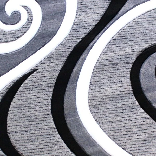 Let the sculpted, gently swirled pattern of this multipurpose area rug add unique style to any room in your home. Offering not only striking looks, this versatile contemporary accent rug allows you to add warmth to hardwood floors, color in multiple spaces, and protects flooring in high-traffic areas. This high-low pile area rug can be a warm place for your feet by the bed, in front of your couch, or in the hallway. Modern materials allow today's rugs to last for years. Made from olefin fibers, this cutting edge area rug is stain and water resistant, colorfast, and provides a soft underfoot feel friendly to kids and pets. The jute backing gives this rug structural integrity and helps promote air flow. Vacuum regularly without the beater bar and spot clean with water and a mild detergent to maintain the look of your new rug.