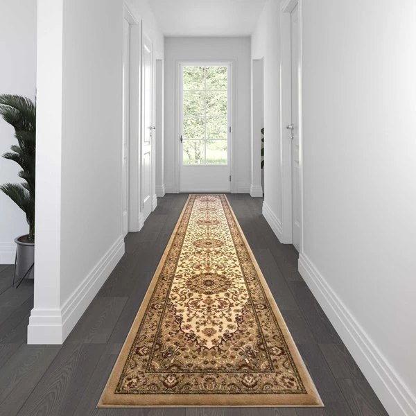 Give any room in your home its own style or help tie them into the look of the rest of your home design with this Persian style runner rug. The versatility of this traditional area rug allows you to add warmth to hardwood floors, dimension to narrow rooms, and protect flooring in high-traffic areas. This low pile area rug can be used in open floor plans to define conversation and dining areas. Indoor rugs have many benefits for the modern home. Made from olefin fibers, these contemporary runner rugs are water resistant, colorfast, and provide a soft underfoot feel friendly to kids and pets. The jute backing gives this rug structural integrity and helps promote air flow. Vacuum regularly without the beater bar and spot clean with water and a mild detergent to maintain the look of your new rug.