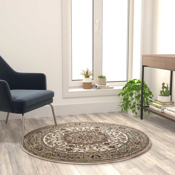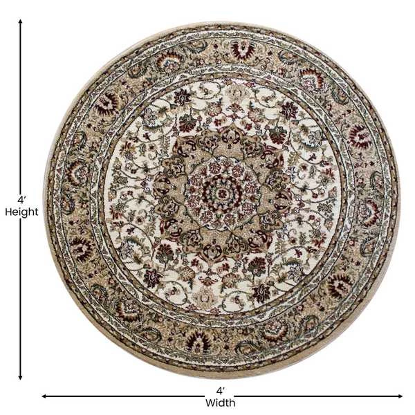 Flash Furniture Ivory 4×4 Round Traditional Persian Style Rug