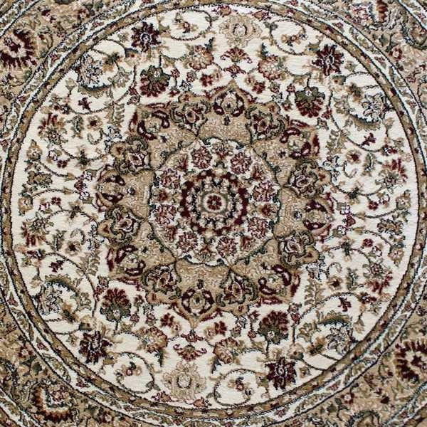 Try something different and add instant sophistication to any room in your home with the on-trend shape of this roundel Persian style area rug. The versatility of this traditional area rug allows you to add warmth to hardwood floors, and protect flooring in high-traffic areas. This low pile area rug can be used in open floor plans to define conversation and dining areas. Indoor rugs have many benefits for the modern home. Made from olefin fibers, these contemporary runner rugs are water resistant, colorfast, and provide a soft underfoot feel friendly to kids and pets. The jute backing gives this rug structural integrity and helps promote air flow. Vacuum regularly without the rotating brush bar and spot clean with water and a mild detergent to maintain the look of your new rug.