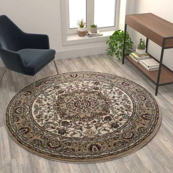 Flash Furniture Ivory 5×5 Round Traditional Persian Style Rug