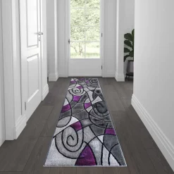 Flash Furniture Purple 2' x 7' Abstract Design Accent Rug