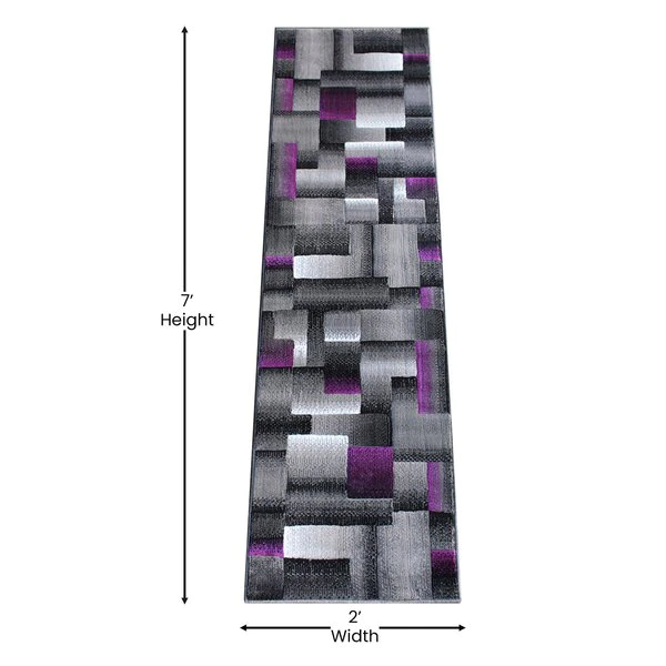 Flash Furniture Purple 2' x 7' Modern Color Blocked Area Rug