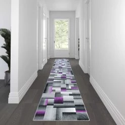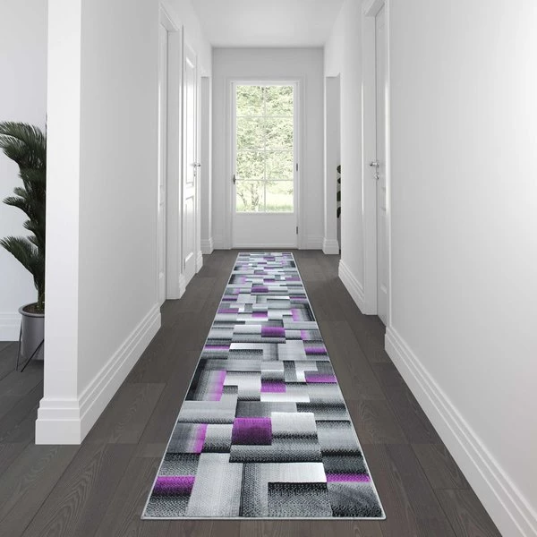 Flash Furniture Purple 3' x 16' Modern Color Blocked Area Rug