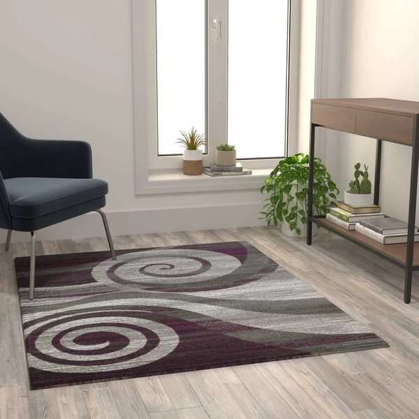 Bring a dynamic look and feel to any space in your home with the spiral pattern of this modern area rug. Offering not only striking looks, this versatile contemporary accent rug adds warmth to hardwood floors, color in any area, and protects flooring in high-traffic areas. This well woven area rug can be a warm place for your feet by the bed, in front of your couch, or in the hallway. Modern materials allow today's rugs to last for years. Made from olefin fibers, this comfy area rug is stain and water resistant, colorfast, and provides a soft underfoot feel friendly to kids and pets. The jute backing gives this rug structural integrity and helps promote air flow. Vacuum regularly without the beater bar and spot clean with water and a mild detergent to maintain the look of your new rug.