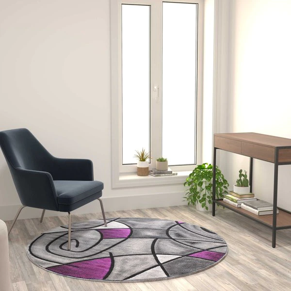 Flash Furniture Purple 5' x 5' Round Abstract Design Area Rug