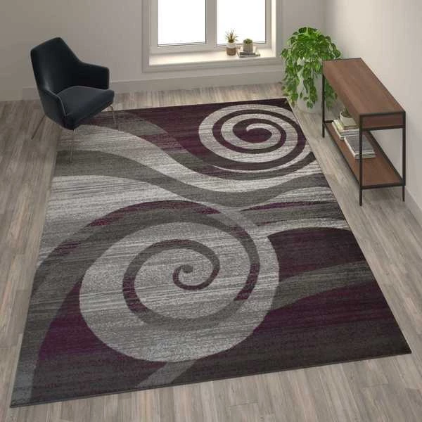 Bring a dynamic look and feel to any space in your home with the spiral pattern of this modern area rug. Offering not only striking looks, this versatile contemporary accent rug adds warmth to hardwood floors, color in any area, and protects flooring in high-traffic areas. This well woven area rug can be a warm place for your feet by the bed, in front of your couch, or in the hallway. Modern materials allow today's rugs to last for years. Made from olefin fibers, this comfy area rug is stain and water resistant, colorfast, and provides a soft underfoot feel friendly to kids and pets. The jute backing gives this rug structural integrity and helps promote air flow. Vacuum regularly without the beater bar and spot clean with water and a mild detergent to maintain the look of your new rug.