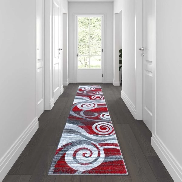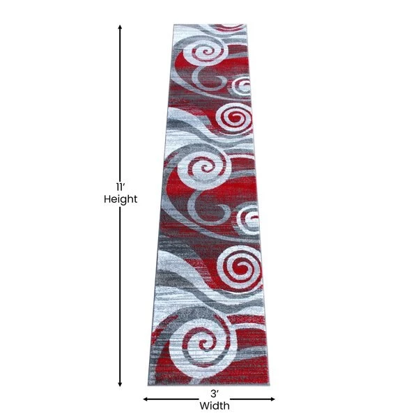 Bring a dynamic look and feel to any space in your home with the spiral pattern of this modern area rug. Offering not only striking looks, this versatile contemporary accent rug adds warmth to hardwood floors, color in any area, and protects flooring in high-traffic areas. This well woven area rug can be a warm place for your feet by the bed, in front of your couch, or in the hallway. Modern materials allow today's rugs to last for years. Made from olefin fibers, this comfy area rug is stain and water resistant, colorfast, and provides a soft underfoot feel friendly to kids and pets. The jute backing gives this rug structural integrity and helps promote air flow. Vacuum regularly without the beater bar and spot clean with water and a mild detergent to maintain the look of your new rug.