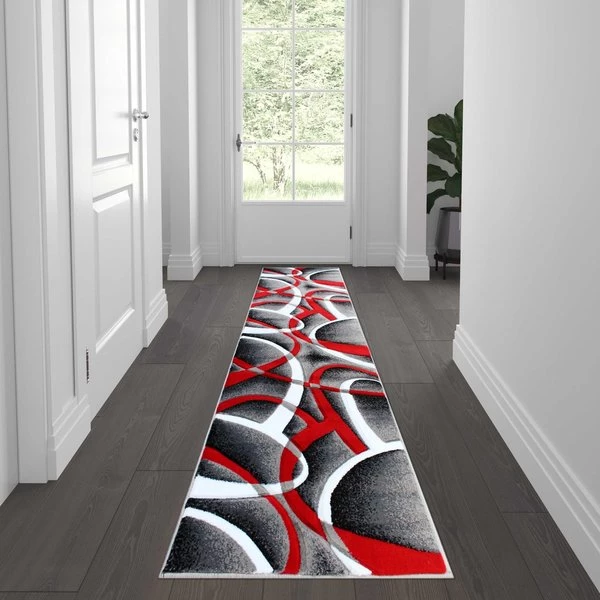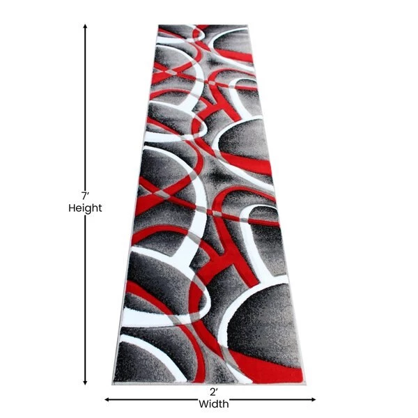 Flash Furniture Red 2' x 7' Modern Plush Abstract Area Rug