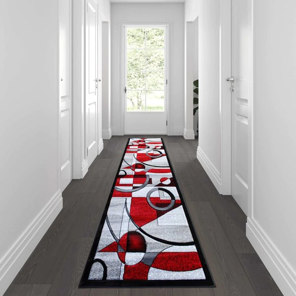 Flash Furniture Red 3 x 10 Geometric Abstract Area Rug