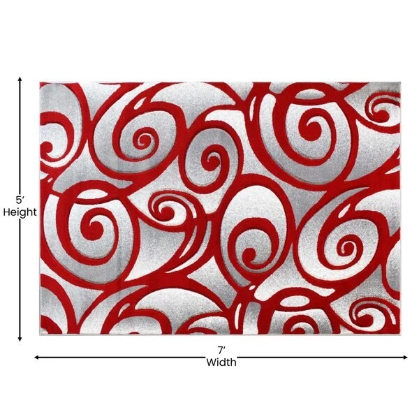 Flash Furniture Red 5 x 5 Sculpted High-Low Pile Area Rug