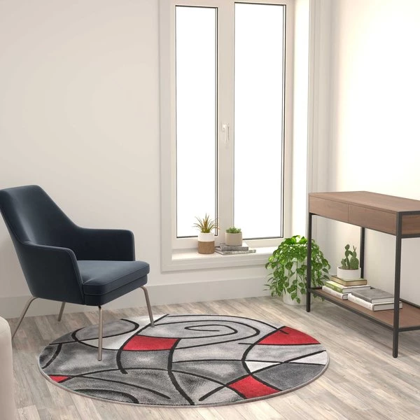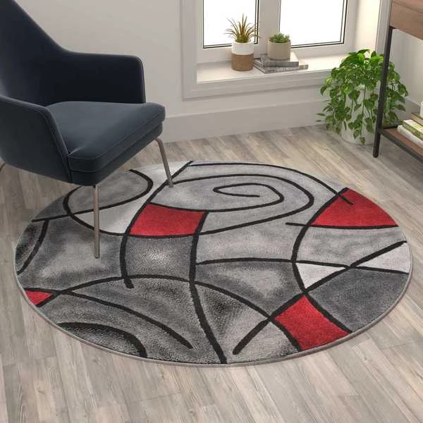 Flash Furniture Red 5' x 5' Round Abstract Design Area Rug