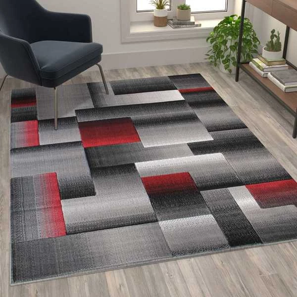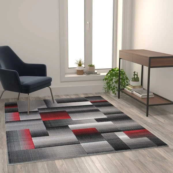 Flash Furniture Red 5' x 7' Modern Color Blocked Area Rug