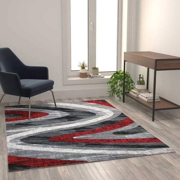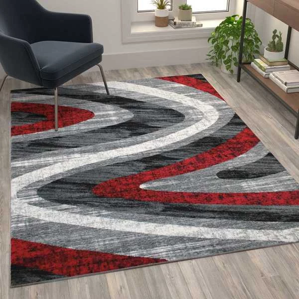 If you can't get to the ocean, bring the waves to you with this modern indoor area rug. This contemporary area rug will add warmth to hardwood floors, color in multiple spaces, and protect your flooring wherever you place it. Warm up hardwood floors, reduce noise, and give any room an instant facelift. Modern materials allow today's rugs to last for long periods of time. Made from olefin fibers, this on-trend area rug is stain and water resistant, colorfast, and provides a soft underfoot feel friendly to kids and pets. The jute backing gives this rug structural integrity and helps promote air flow. Vacuum regularly without the beater bar and spot clean with water and a mild detergent to maintain the look of your new rug.