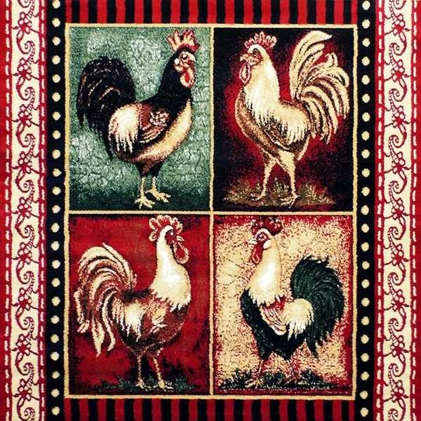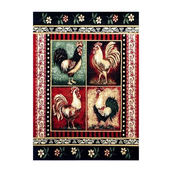Get the rustic, downhome feel of life on the farm no matter where you live with this cabin style rooster motif area rug. Add this indoor area rug anywhere you want to add a comfy and cozy vibe. This unique area rug adds vibrant color to any space and can serve as a focal point in your living room, dining room, or kitchen. Long lasting and durable are qualities that are essential for a busy household. Made from olefin fibers, this vintage look area rug is stain and water resistant, colorfast, and provides a soft underfoot feel friendly to kids and pets. The jute backing gives this rug structural integrity and helps promote air flow. Vacuum regularly without the beater bar and spot clean with water and a mild detergent to maintain the look of your new rug.