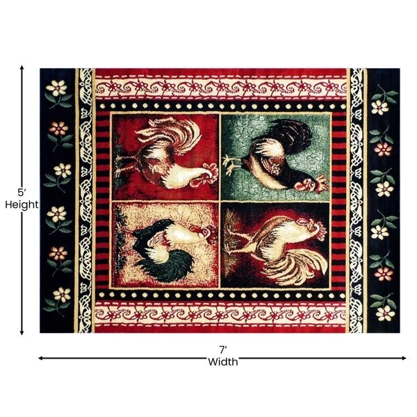 Flash Furniture Red 5×7 Farmhouse Rooster Themed Area Rug