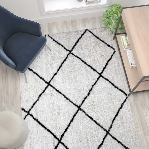 Small changes can breathe new life into almost any room in your living space and this diamond trellis style shag area rug is just the ticket for some much needed savoir faire. A lattice design area rug can effortlessly transform the look and feel of a room without breaking the bank plus area rugs have practical benefits as well. If your flooring has flaws that you don't want visitors to notice or tends to get cold when the temperature drops, a modern style area rug will lend chic style while hiding an eyesore as well as keeping your feet warm. Long lasting, comfortable and budget friendly are the bywords of a busy household and this floor rug won't disappoint. Made from lightweight but highly durable micro polyester, this rug is fade and stretch resistant to retain it's great looks and polyester is super soft to feel plush on your feet. Highly affordable and free of allergens, this microfiber area rug will help both you and your wallet breath easier. Nobody has time for high-maintenance items so stain resistance and ease of cleaning make this beautiful area rug a must have. Dirt is quickly vacuumed away while water-based spills can be blotted with a dry cloth. Ideal for your living room, home office or bedroom, this thick area rug will be an asset to any decor.