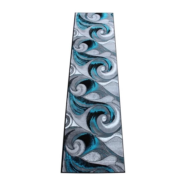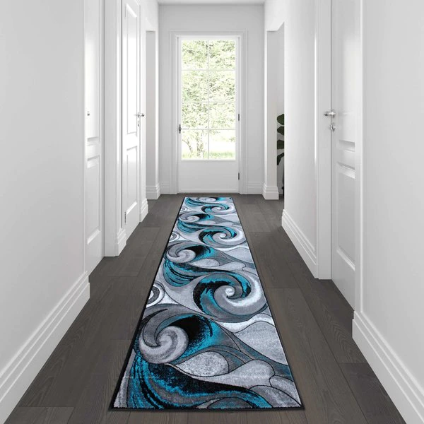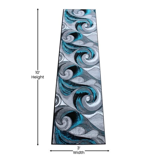 Flash Furniture Turquoise 3' x 10' Modern Ocean Waves Area Rug