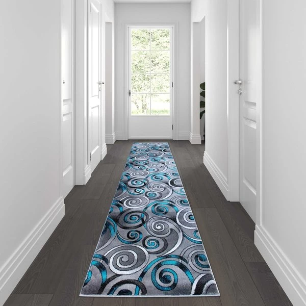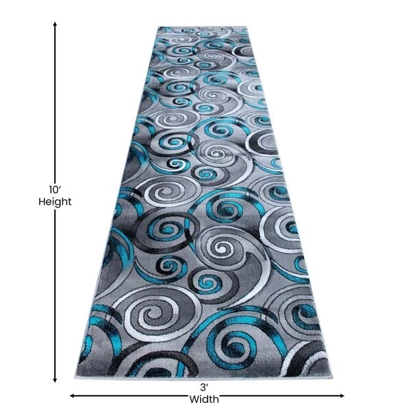 Flash Furniture Turquoise 3' x 10' Modern Swirl Area Rug