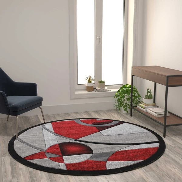 Flash Furniture Turquoise 5 x 5 Round Geometric Abstract Area Rug