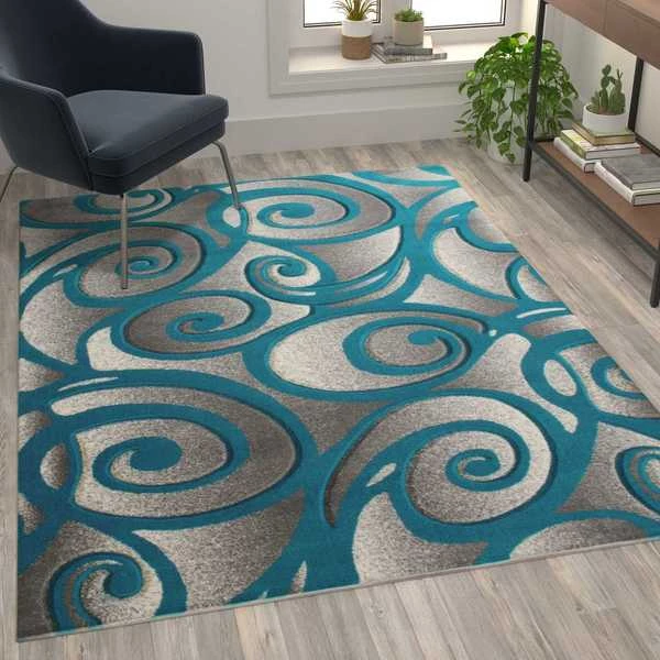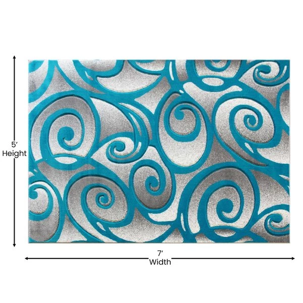 Flash Furniture Turquoise 5 x 5 Sculpted High-Low Pile Area Rug