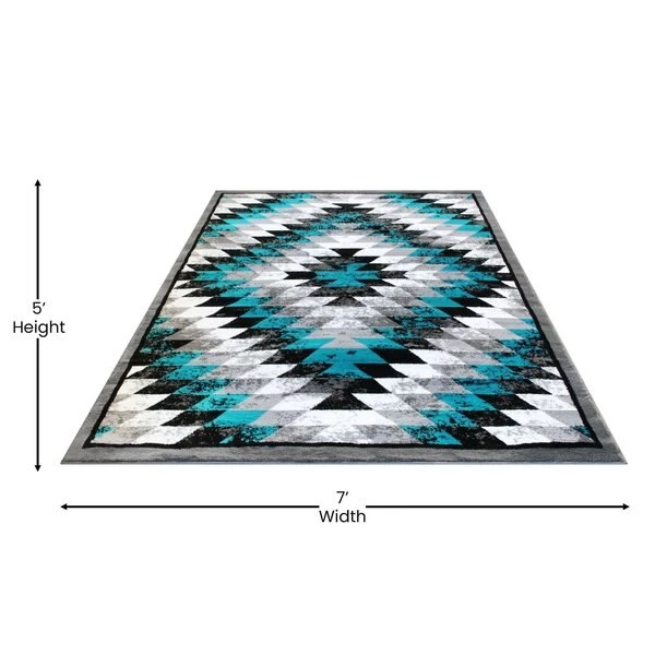 Let the dramatic design of this southwestern style area rug add some inspiration to your decor. This versatile modern accent rug allows you to add warmth to hardwood floors, dimension to small spaces, and protects flooring in high-traffic areas. This plush, high pile area rug can be used in large rooms to define the intent of specific areas. Modern rugs provide several benefits in the home. Made from olefin fibers, these contemporary runner rugs are stain and water resistant, colorfast, and provide a soft underfoot feel friendly to kids and pets. The jute backing gives this rug structural integrity and helps promote air flow. Vacuum regularly without the beater bar and spot clean with water and a mild detergent to maintain the look of your new rug.