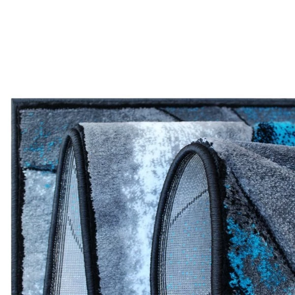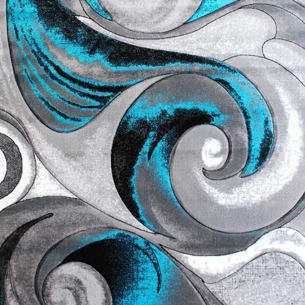 Let the dynamic composition of this ocean inspired area rug bring depth and dimension to any room in your home. Striking looks are just the beginning of the list of attributes this versatile modern accent rug features. Use this rug to add warmth to hardwood floors, color in any space, and define different areas in an open floorplan. This well woven area rug can be a warm place for your feet by the bed, in front of your couch, or in the hallway. Made from olefin fibers, this comfy area rug is stain and water resistant, colorfast, and provides a soft underfoot feel friendly to kids and pets. The jute backing gives this rug structural integrity and helps promote air flow. Vacuum regularly without the beater bar and spot clean with water and a mild detergent to maintain the look of your new rug.