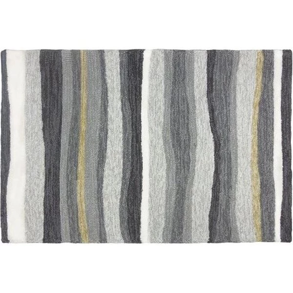 FeaturesWavy stripes in gold. white. and multiple shades of grayIndoor/Outdoor useCare InstructionVacuum regularly with floor only setting – do not use a beater bar. Spot clean or hose off with a low sudsing detergent and cold water. Rinse thoroughly and line dry or dry flat. Carefully trim sprouts with scissors. Do not pull loose yarn.SpecificationsColor: Multi ColoredMaterial: PolypropyleneArtist: Homefires StudiosConstruction: Hand HookSize: 26" x 60"Weight: 6 lbs