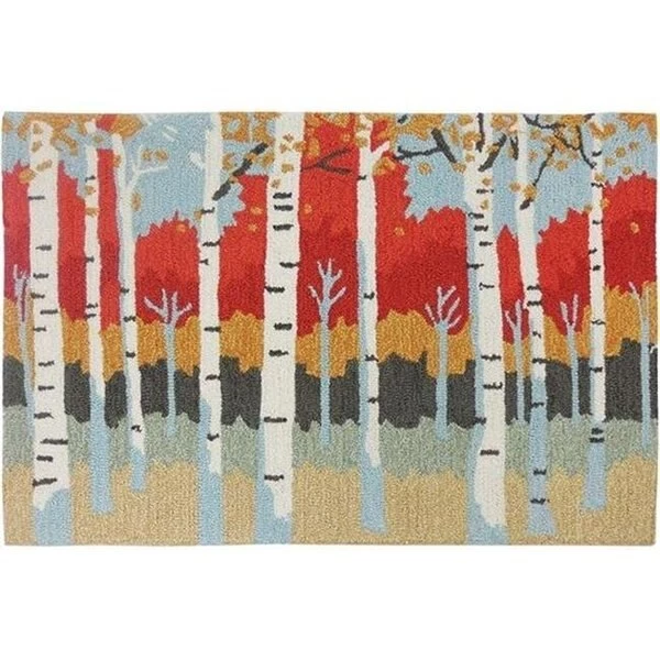 FeaturesCream trees with orange and red tops on a background of gold. dark gray and light blueIndoor use onlyCare InstructionFor best results. we recommend hand washing with mild detergent. Rinse thoroughly. Dry flat and reshape as necessary. No bleach and do not iron. Rug may be dry cleaned. Trim sprouts carefully with scissors. Do not pull loose yarn.SpecificationsColor: Multi ColoredMaterial: PolyesterArtist: James WiensSize: 22" x 34"Weight: 7 lbs