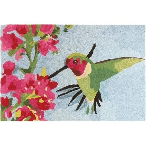 FeaturesA light and dark green hummingbird with a pink face and pink geraniums on a light blue backgroundIndoor use onlyCare InstructionFor best results. we recommend hand washing with mild detergent. Rinse thoroughly. Dry flat and reshape as necessary. No bleach and do not iron. Rug may be dry cleaned. Trim sprouts carefully with scissors. Do not pull loose yarn.SpecificationsColor: Multi ColoredMaterial: PolypropyleneArtist: Martha CollinsSize: 22" x 34"Weight: 3 lbs