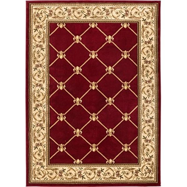 FeaturesStain resistant and won't fade in the sunlight over time100-percent heat-set polypropylene provides a luxurious look to your room. 0.5 in. pile height. Velvety soft pile100-percent jute backing is safe for wood floors – Extremely durable and very easy to cleanPower loomedCollection – TimelessDesign – Fleur De LisColor – RedSize – 3 ft. 11 in. x 5 ft. 3 in.