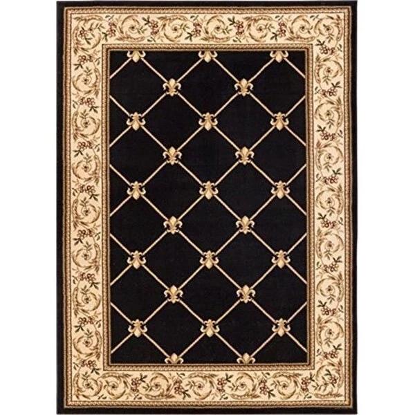 FeaturesStain resistant and won't fade in the sunlight over time100-percent heat-set polypropylene provides a luxurious look to your room. 0.5 in. pile height. Velvety soft pile100-percent jute backing is safe for wood floors – Extremely durable and very easy to cleanPower loomedCollection – TimelessDesign – Fleur De LisColor – BlackSize – 7 ft. 10 in. x 10 ft. 6 in.