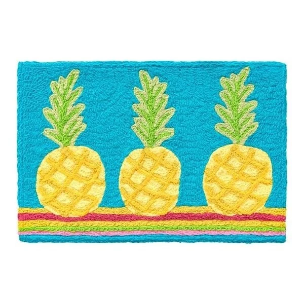 The party continues with this kitchen themed Jellybean accent rug. Crafted from recycled materials with machine washable durability. the tropical palette of yellow. teal. and green will brighten a variety of spaces. This indoor outdoor accent rug will brings the celebration to you. Jellybean rugs are bright. colorful and machine washable accent rugs. Throw your Jellybean rug in the wash and watch it come out good as new! The beautiful. bright colors were made to last through many. many washes. Jellybean rugs make great gifts for everyone on your Christmas and birthday lists. Always use a liner with your Jellybean rug to provide slip resistance and prevent possible chemical reaction to some manufactured flooring. FeaturesUnique and stylish area rugSimple yet stylish vibePerfect finishing touch to your homeMade from durable materials for long life usePineapple Fiesta Indoor & Outdoor RugCare Instructions:Machine Wash Gentle. Cold Water. No BleachNo Iron. Line Dry or Dry Flat – No DryerSpecificationsApplication: Indoor & OutdoorDesign: Pineapple FiestaSize: 20" x 30"Weight: 2 lbs