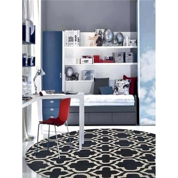 Hand Tufted Wool Round Area Rug This one is a very sober rug from Unbeatable Sale. Its uniqueness lies in its simple design and it will make your interiors look serene. We have manufactured this using high quality wool and thus it is very durable and sturdy. It will give a very comfortable underfoot experience. FeaturesHandmade by skilled artisans enhancing in-depth color and product durabilityGeometric designed and weaved by hand tufted techniqueSoft wool yarn with ultra-plush pile height of 0.75 inches for underfoot comfortDesigner area rugs perfect for Living Room. Bedroom. Study Room. Dinning Room. FoyerSpecificationsColor: Black & WhiteSize: 8 x 8 ft.Construction: HandmadeWeave & Technique: Hand TuftedShape: RoundMaterial: 70% Wool & 30% CottonRecommended: IndoorReversible: NoFloor Heating Safe: YesNon-Slip Backing: YesCountry of Origin: IndiaWeight: 48.42 lbs