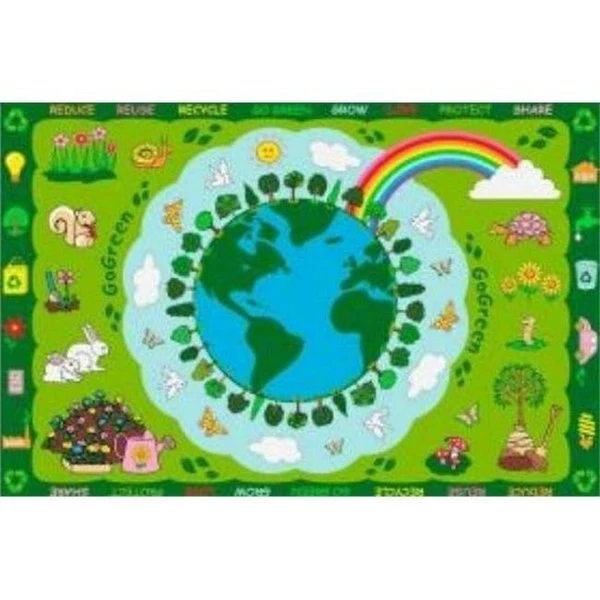Make their room green by this rug. The words like love. reuse and images like rainbows. flowers. trees on this rug will develop your child to go green. Tufted rug. not machine washable.100% Nylon Pile.Action Backing.Machine made in Egypt.Naturally elastic and water repellant.Spot clean with mild soap and cold water.Approximate Size: 4" W x 6" L.Depth: 78".Width: 51".Length: 78".Pile Height: 0.125".Assembled Height: 1/8".Thickness: 1/8".Indoor/Outdoor: Indoor.Stain Resistant: With Treatment.Water repellent: Yes.Material: Polyester. Latex. Other.Cleaning instructions: Hand washable.Color Family: Multi.Color/Finish: Green.Construction: Machine-made.