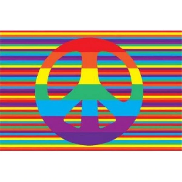 This peace sign with a striped bright colored background will bring energy that is more positive to everyone’s room. Peace. love. harmony and happiness are what we need and this rug can help bring some of that positive energy and message to anyone’s room! Multi-colored. tufted rug. not machine washable.100% Nylon Pile.Latex Backing.Machine made in Egypt.Naturally elastic and water repellant.Spot clean with mild soap and cold water.Approximate Size: 3" W x 5" L.Depth: 58".Length: 58".Width: 39".Pile Height: 0.125".Assembled Height: 1/8".Thickness: 1/8".Indoor/Outdoor: Indoor.Stain Resistant: With Treatment.Water repellent: Yes.Material: Polyester. Latex. Other.Cleaning instructions: Hand washable.Color/Finish: Multi.Construction: Machine-made.