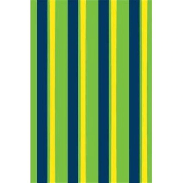 These bright green. yellow and blue colored stripes make it easy to decorate any kid’s room. Match it with his or her favorite sports team. animal. or pet. Colorful. tufted rug. not machine washable.100% Nylon Pile.Latex backing helps keep the rug from shifting and slipping.Machine made in Egypt.Naturally elastic and water repellant.Spot clean with mild soap and cold water.Approximate Size: 3" W x 5" L.Depth: 58".Length: 58".Width: 39".Pile Height: 0.125".Assembled Height: 1/8".Thickness: 1/8".Indoor/Outdoor: Indoor.Stain Resistant: With Treatment.Water repellent: Yes.Material: Polyester. Latex. Other.Cleaning instructions: Hand washable.Color/Finish: Multi.Construction: Machine-made.