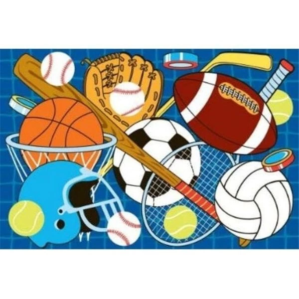 Love sports?? Then this is the rug for you! It’s sports central here. where this rug features the top sports favorites: football. soccer. basketball. tennis. hockey. baseball and volleyball. Inspire your child to be an active athlete with so many choices and possibilities all year long. There is no excuse not to have fun! Whether serious about athletics or simply want to have fun. motivate your child to be an active and healthy kid in life playing all season long. Large sized sports equipment and balls take over the rug that it will be hard to miss in any room. office or training facility; you will even be dreaming about sports. Multi-colored. blue background. Tufted rug. not machine washable.100% Nylon Pile.Latex backing helps keep the rug from shifting and slipping.Machine made in Egypt.Naturally elastic and water repellant.Spot clean with mild soap and cold water.Approximate Size: 3" W x 5" L.Depth: 58".Length: 58".Width: 39".Pile Height: 0.125".Assembled Height: 1/8".Thickness: 1/8".Indoor/Outdoor: Indoor.Stain Resistant: With Treatment.Water repellent: Yes.Material: Polyester. Latex. Other.Cleaning instructions: Hand washable.Color/Finish: Multi.Color Family: Blues.Construction: Machine-made.