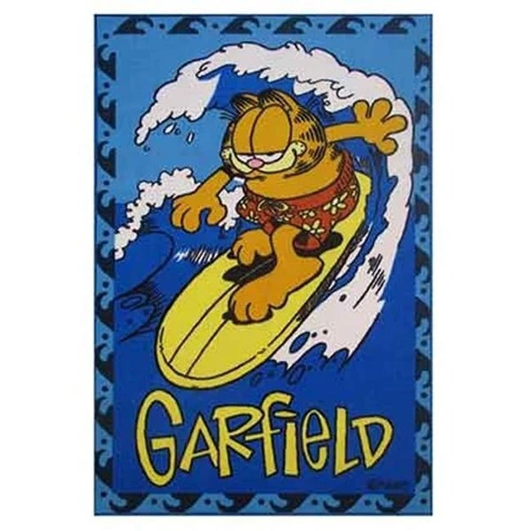 Your child's room is a natural extension of them. Add these innovative designs from Fun Rugs as a finishing touch to spruce up your child's decor. Offering a vivid and eye appealing array of colors that will stimulate the mind and imagination of children of all ages. You will be able to count the compliments of this high quality rug.Easy to cleanDimension – 58 L x 39 W x 0.5 H in.Garfield Surfing RugMaterial – 100% NylonSize – 39 x 58