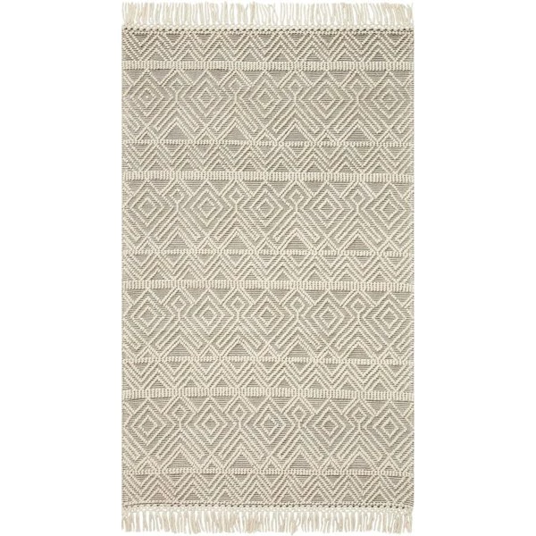 Expertly hand-woven in by skilled artisans in India. the Noelle Collection a tonal and textural choice for the neutral-lover in all of us. Full of intricate detail and finished with a generous fringe. Noelle features a blend of cotton. polyester. wool. and viscose. Care Instructions:Clean spills. including water. immediately by blotting with a clean. white dry sponge or cloth. Avoid exposure to all liquids. Professional cleaning recommended. Appropriate rug pad is highly recommended on all surfaces to prevent slipping. add cushion. and improve durability. Expect shedding. For vacuuming. use a vacuum cleaner without beater bar or one where you can set the bar to the highest pile setting. If your vacuum has variable power settings. set on low. Vacuum full length of the rug. turn and repeat to the next area. rather than back and forth motion.SpecificationsSize: 5 x 8 ft.Style: ContemporaryColor: Ivory & GreyMaterials: Cotton. Polyester & WoolPile Height: 0.38 in.Shape: RectangleCollection: NoelleCountry of Origin: India