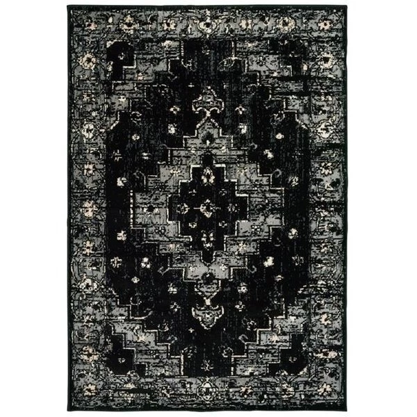 Bold patterns in dark. rich colors identify the Infinity Collection. This plush indoor area rug features a dramatic abstract design. sure to add style to any room. FeaturesInfinity Geometric Oriental Indoor Area Rug100% PolypropyleneLatex with a cotton canvas backingElegant. naturally durable. feels soft on bare feetSpecificationsColor: Black & GraySize: 5 ft. 2 in. x 7 ft. 2 in.Weight: 14 lbs